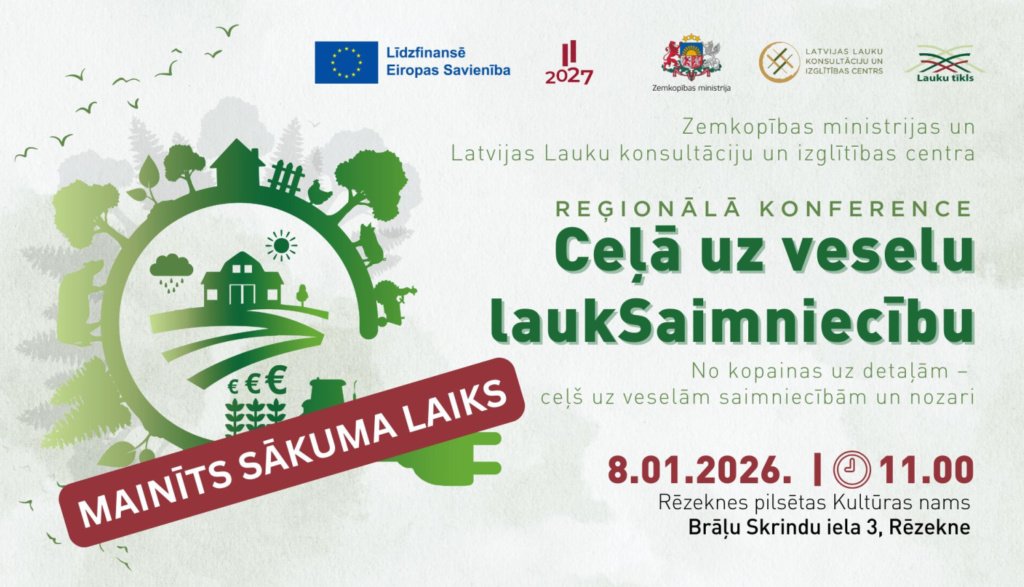Zemkopības ministrija un Latvijas Lauku konsultāciju un izglītības centrs (LLKC) ceturtdien, 8. janvārī Rēzeknē rīko reģionālo konferenci “Ceļā uz veselu laukSaimniecību”, lai runātu par Latvijas lauksaimniecības nākotni un ilgtspēju.